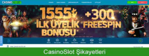 Online bahis firması Casino Slot, Curacao oyun komisyonu yasalarına tabi. Play N Go, Novomatic, Yggdrasil, Bet Games TV, Isoftbet altyapısını kullanıyor. Gerek farklı oyunlara sahip casino, gerekse değişik branşları barındıran spor bahisleri bölümünden para kazanabilirsiniz. Casino Slot şikayetleri az olmakla beraber, kısa bir zaman dilimi içerisinde çözüme ulaştırılmakta.