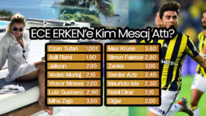 Bahis severler bu bahse cevap vererek yüksek oranlarda para kazanabiliyor. Hangi Fenerbahçeli futbolcunun Ece Erken’e mesaj attığını biliyor ya da araştırıyorsanız site üzerinden bu bahsi yapabilirsiniz. Bu bahis için sitenin yüksek oranlar belirlediğini görmekteyiz. Sizlerde Royalbetin tarafından sunulan bu bahis için kupon yapıp, tahmininizi tutturarak para kazanabilirsiniz.